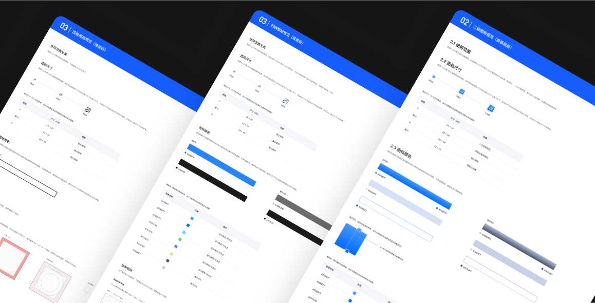 根据内容绘制基础图形,区分层次,加入特征的表达。在绘制上,用了5种表现形式分别为外直角、渐变、投影、线条、方点,在绘制此级图标需按此规范绘制,呈现最终图标。