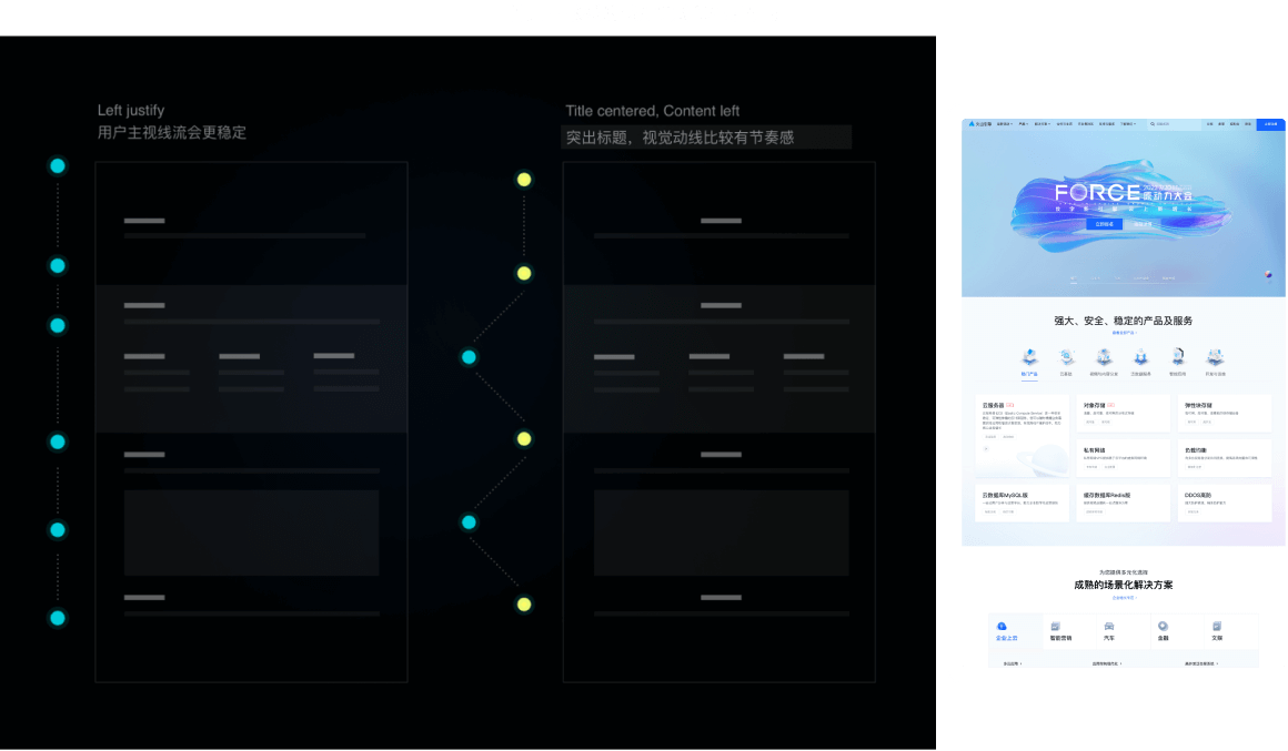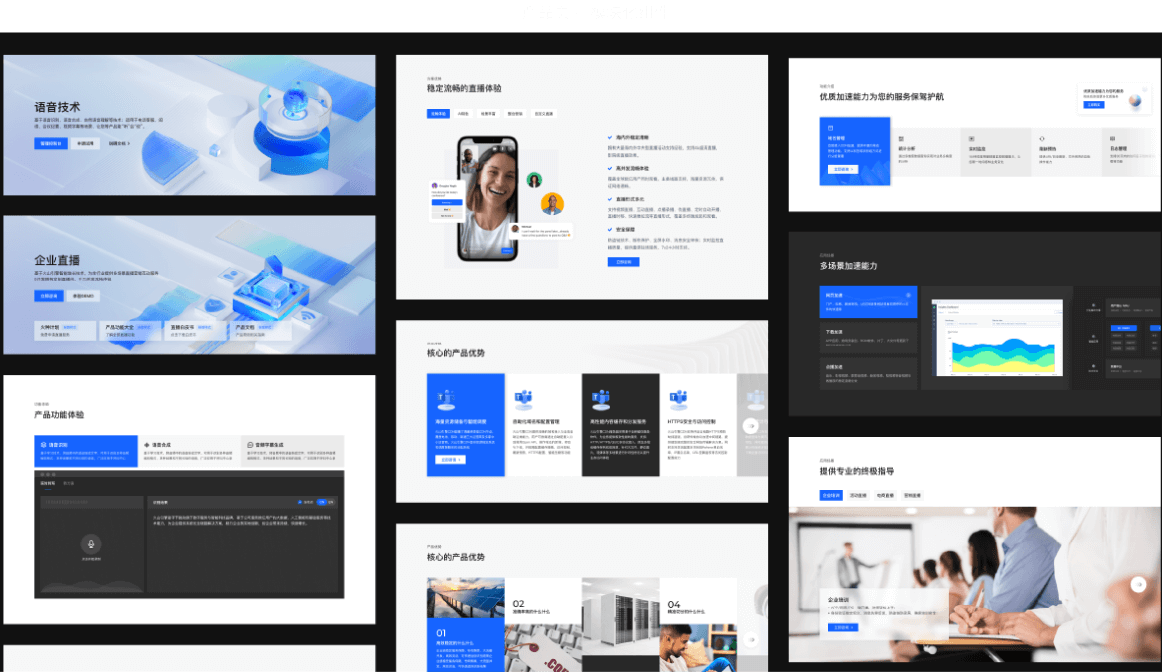 将官网3.0与发布会升级做一个联动,找到发布会与官网3.0升级的耦合点,虽两个项目呈现形式不同,但从品牌的角度出发的二者共性(目的都是发布云产品),寻找视觉上既同又分的点,发现二者视觉的共性:云产品